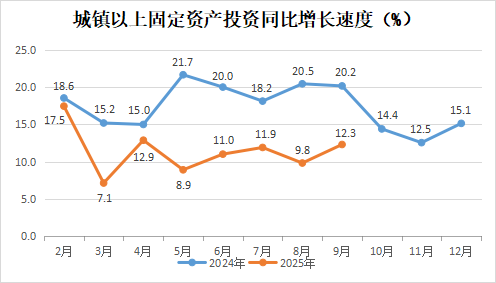 1-9月,全区城镇以上固定资产投资同比增长12.3%,比上月回升2.5个百分点。其中,项目投资同比上升5.1%;房地产开发投资同比增长31.0%,较上个月提升15.3个百分点;工业投资同比增长13.3%;民间投资同比增长12.6%,较上个月回升4.6个百分点。房地产销售面积同比增长53.3%。