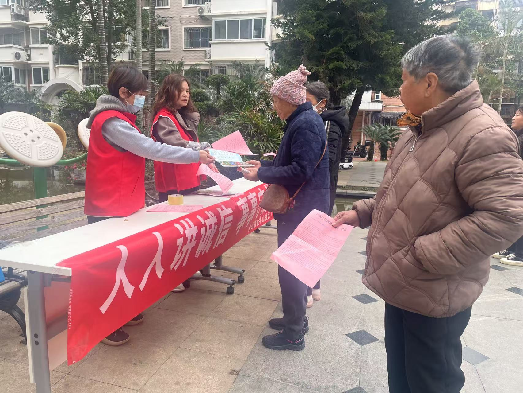 活动中,社区工作人员和志愿者向商户和居民发放了诚信宣传单,并面对面讲解诚信的重要性,引导大家要从身边小事做起,做诚信公民,争当诚信模范。居民们纷纷表示要从自身做起,讲诚信话、办诚信事、做诚信人,以自己的诚信行为,带动和影响身边的每一个人。