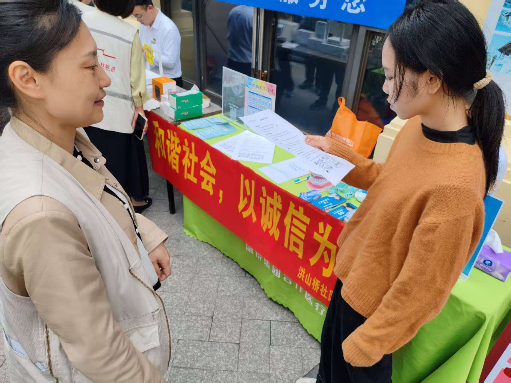 近日为提升社区居民的信用意识和诚信观念,洪山桥社区在中心广场组织开展了“信用日”主题宣传活动。
