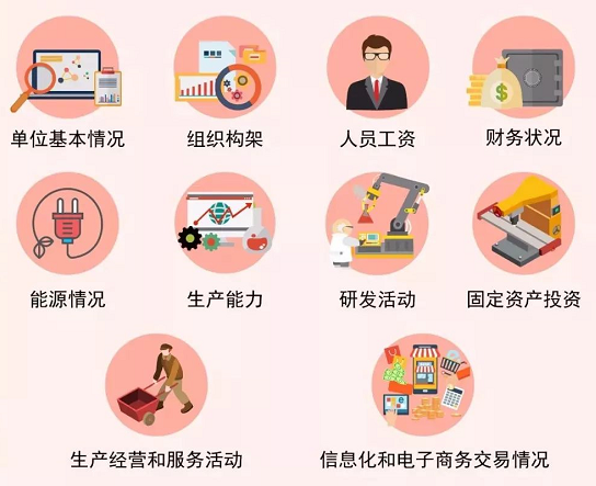“体检”项目有哪些呢?如上图所示,包括:普查对象基本情况、组织结构、人员工资、生产能力、财务状况、生产经营、能源生产和消费情况等等.....经济普查按照对象的不同类型,设置普查通用表、专业普查表、部门普查表。