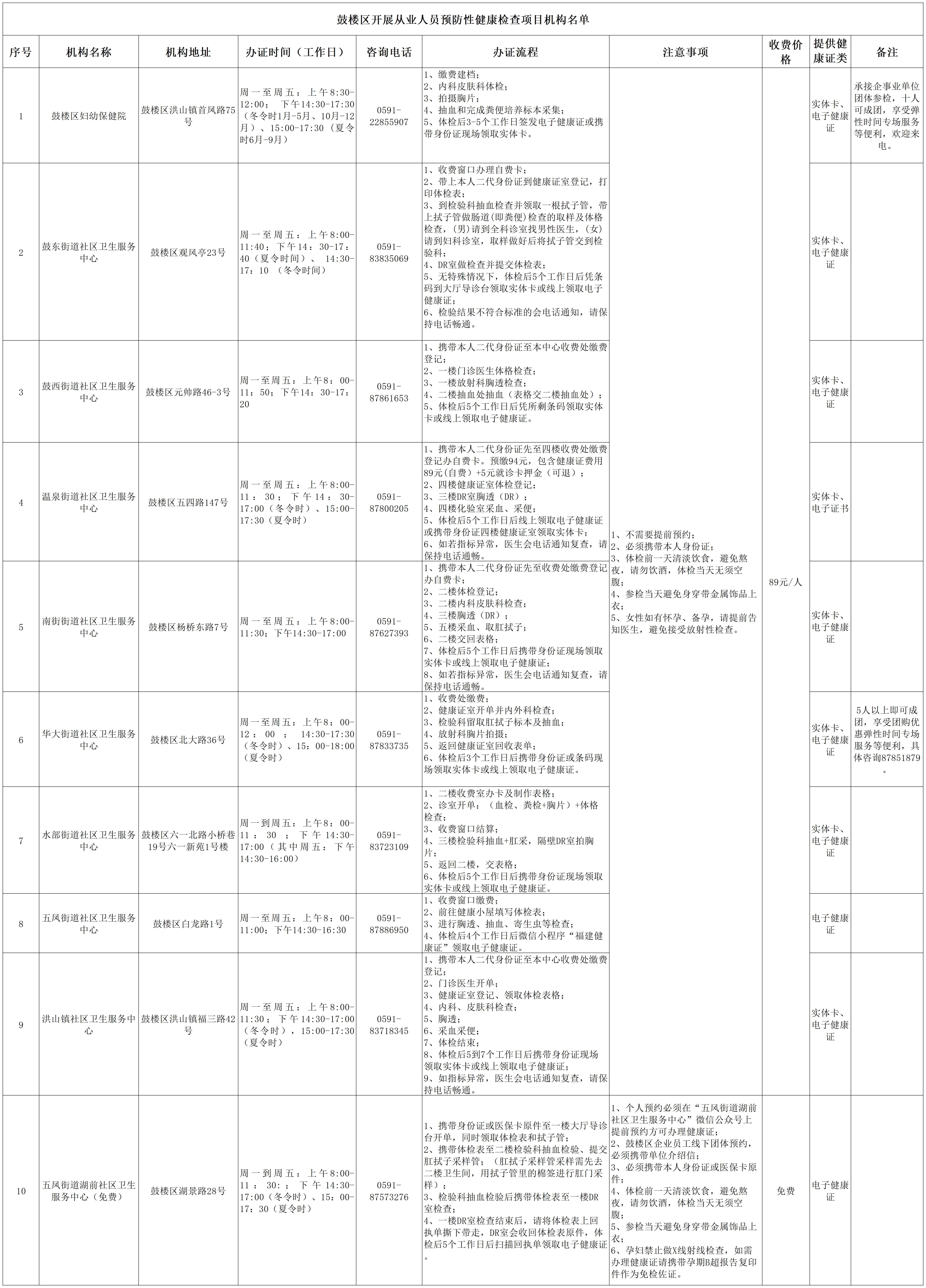 鼓楼区共有10所公立医疗卫生机构可以开展从业人员预防性健康检查
